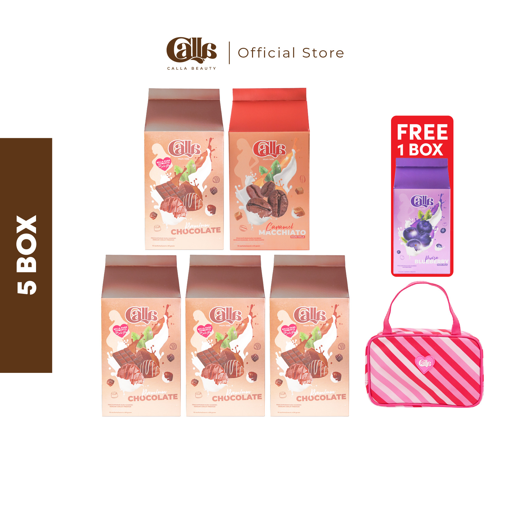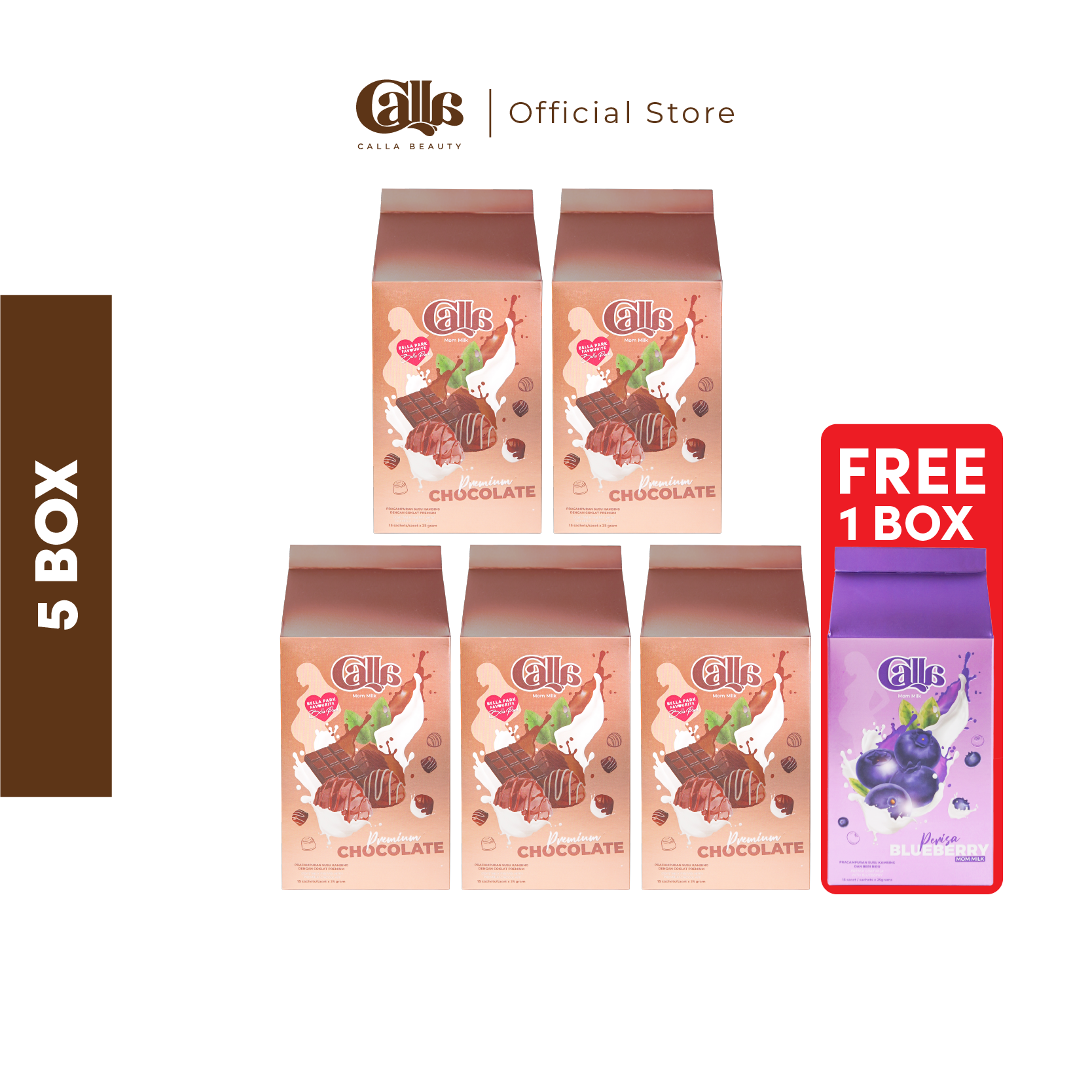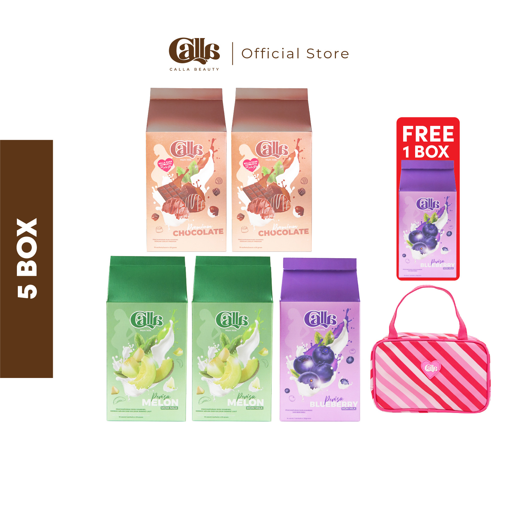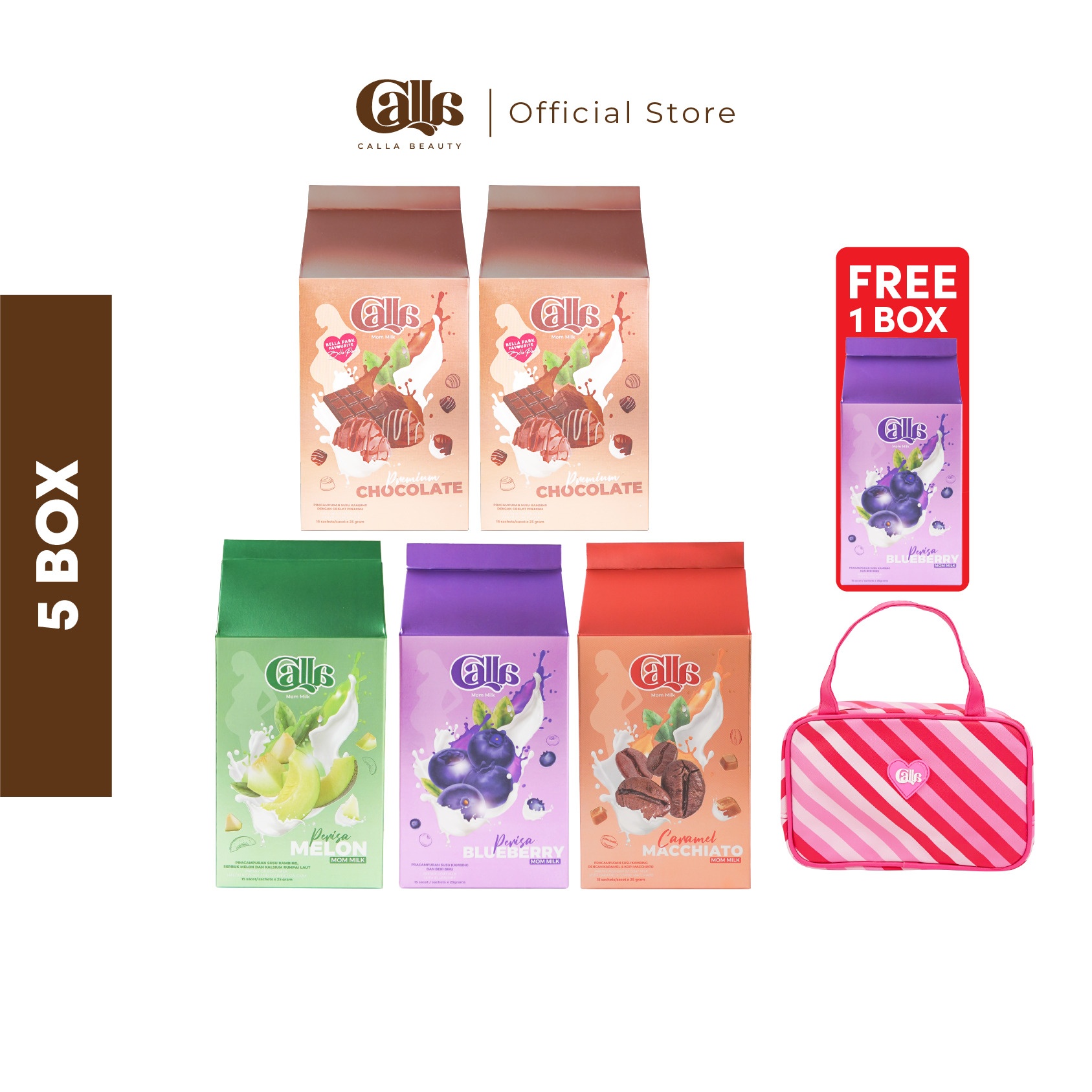 1 Box Calla Mom Milk mengandungi 15 sachets.Setiap box mengandungi satu perisa.