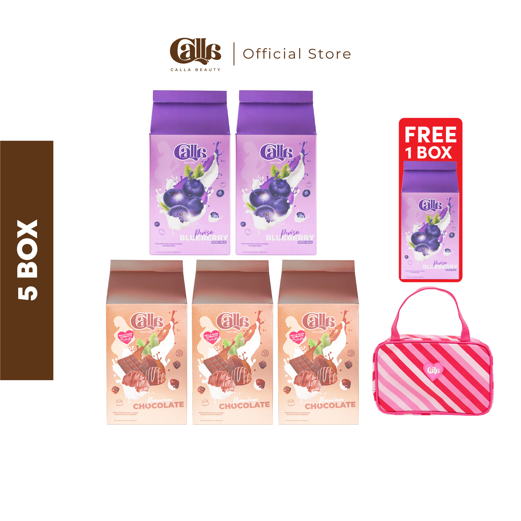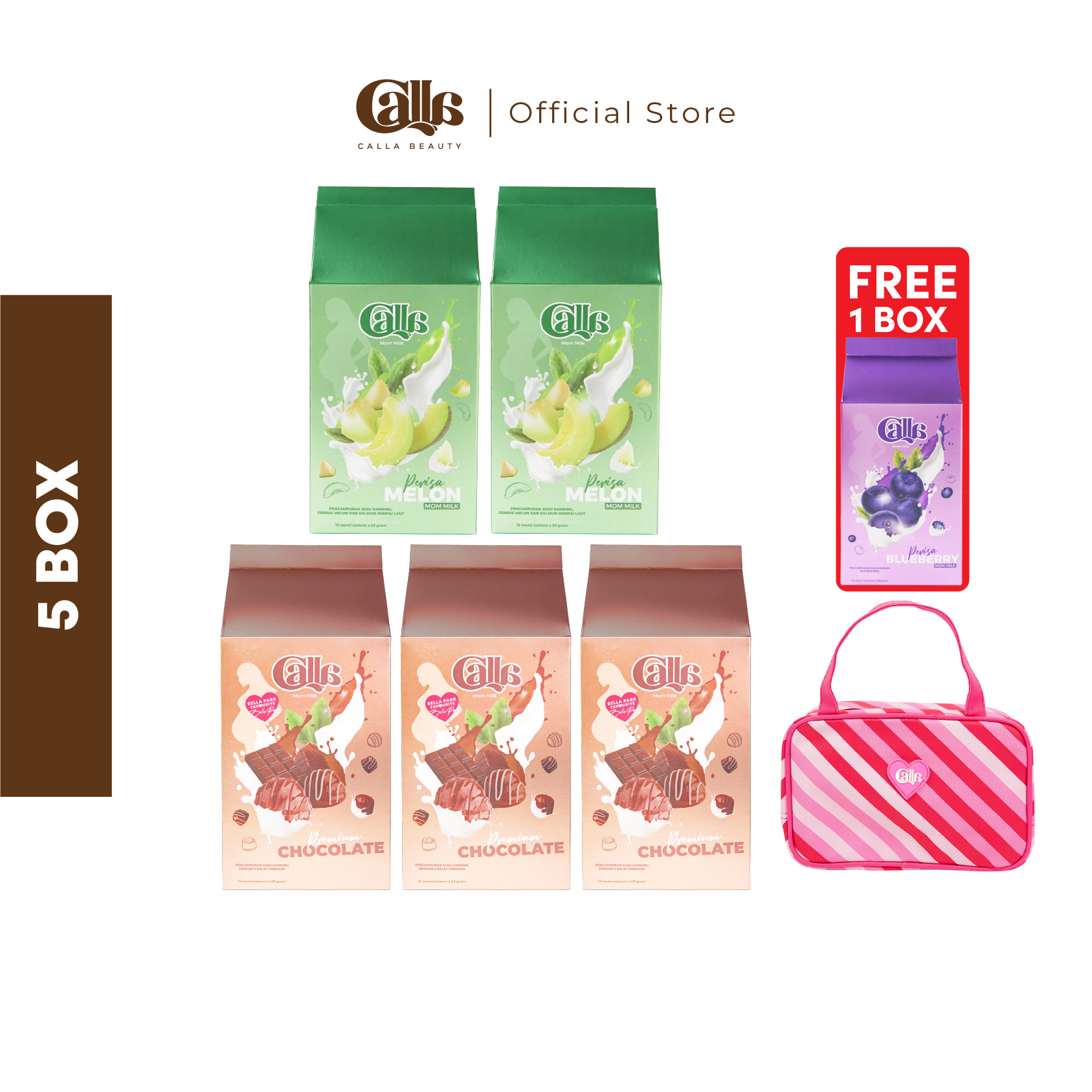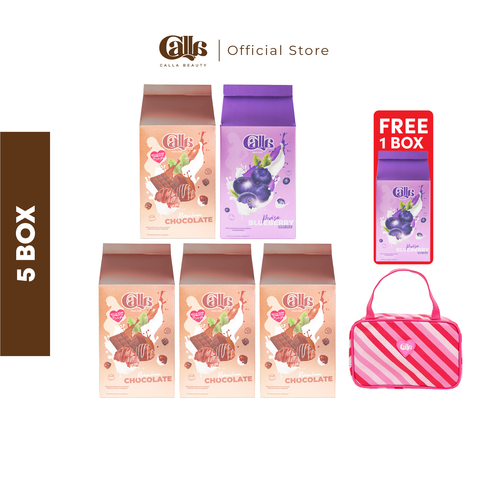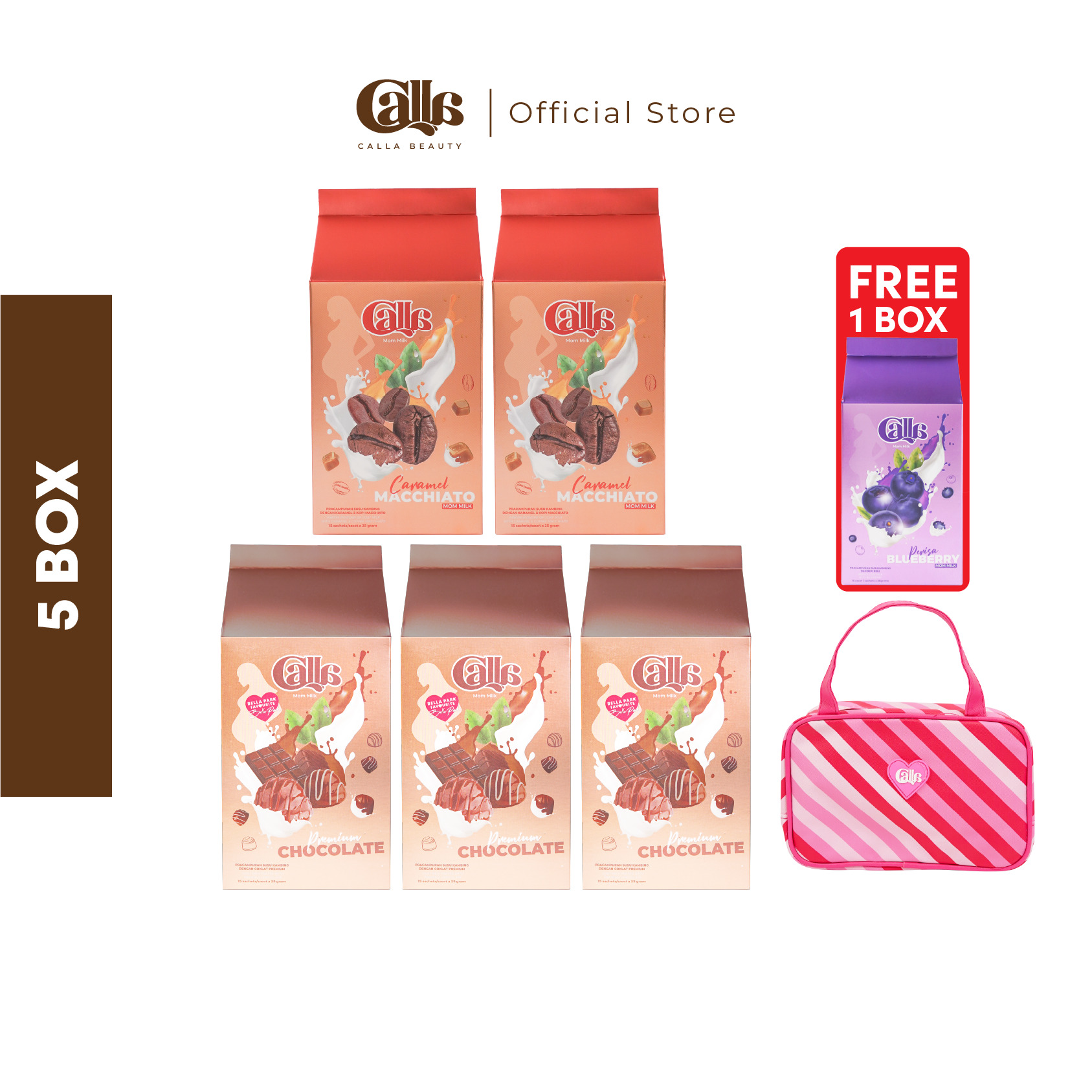 1 Box Calla Mom Milk mengandungi 15 sachets.Setiap box mengandungi satu perisa.